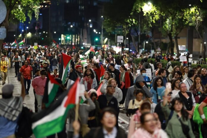 Meksiko’da yüzlerce kişi Filistin bayraklarıyla yürüyüş yaparak siyonist işgale karşı sloganlar yükseltti.