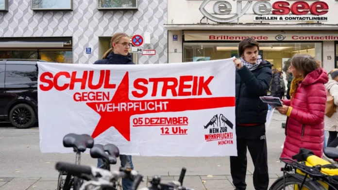 Almanya Federal Meclisi dün zorunlu askerliğin geri getirilmesini tartışırken, ülkenin 90 kentinde öğrenciler hükümetin militarist planlarına karşı sokağa çıktı. “Zorunlu askerlik hizmetine karşı okul grevi” çağrısıyla bir araya gelen gençler, özellikle 2008 ve sonrasında doğan kuşağın yeniden askerlik kıskacına alınmasına tepki gösterdi.