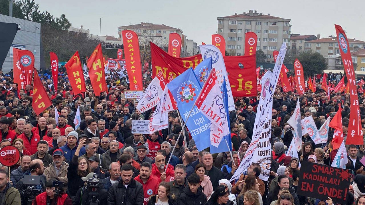 DİSK Genel Başkanı Arzu Çerkezoğlu ise asgari ücretin açlık sınırının çok altında olduğunu vurguladı: “Bugün Türkiye’de 22 bin 104 lira olarak belirlenen asgari ücret, bir aileyi geçindirecek düzeyde değil. İşçiler patronundan daha çok vergi ödüyor, grevler yasaklanıyor, sendikalaşmanın önüne engeller konuyor. Bu ülkede çocuklar okula aç gidiyor, kadınlar eşitsizlik ve şiddetle karşı karşıya. Biz bu adaletsizliklere karşı, gerçek bir demokrasi, eşitlik ve özgürlük için yürüyoruz.”