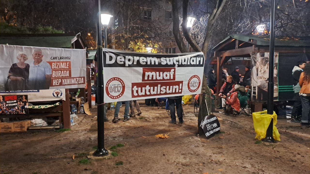 6 Şubat depremlerinde yakınlarını kaybedenlerin oluşturduğu Adalet Peşinde Aileleri Platformu, Meclis’te görüşülen 11. Yargı Paketi’nin 27. maddesinin deprem suçlularına infaz indirimi sağlamaması talebiyle, Meclis yakınlarındaki Cemal Süreya Parkı’nda nöbete başlamıştı.