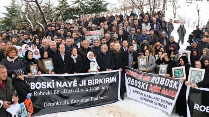 Şırnak’ın Uludere ilçesine bağlı Roboskî köyünde, 28 Aralık 2011’de Türk Silahlı Kuvvetleri’ne ait savaş uçaklarının bombardımanı sonucu 19’u çocuk 34 kişinin katledilmesinin üzerinden 14 yıl geçti. Katliamda yaşamını yitirenler, yıldönümünde mezarları başında anıldı. Anmada, katliamın insanlığa karşı işlenmiş bir suç olduğu vurgulanırken, barışın ancak geçmişle yüzleşmek ve hakikati açığa çıkarmakla mümkün olacağı ifade edildi.