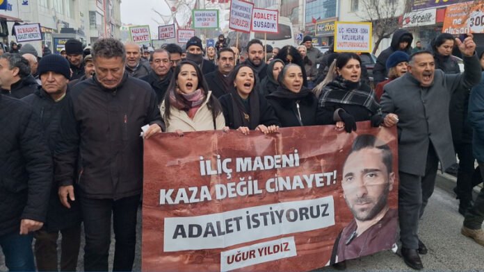 Erzincan’ın İliç ilçesindeki Çöpler Altın Madeni’nde 13 Şubat 2024’te meydana gelen ve 9 işçinin hayatını kaybettiği maden katliamına ilişkin süren davanın 5’inci duruşması bugün görüldü. Duruşma öncesinde, katliamda yakınlarını kaybeden aileler adalet talebiyle Dörtyol Meydanı’nda bir araya geldi. Aileler ve destek verenler, buradan Erzincan Adliyesi’ne yürüyüş gerçekleştirdi.