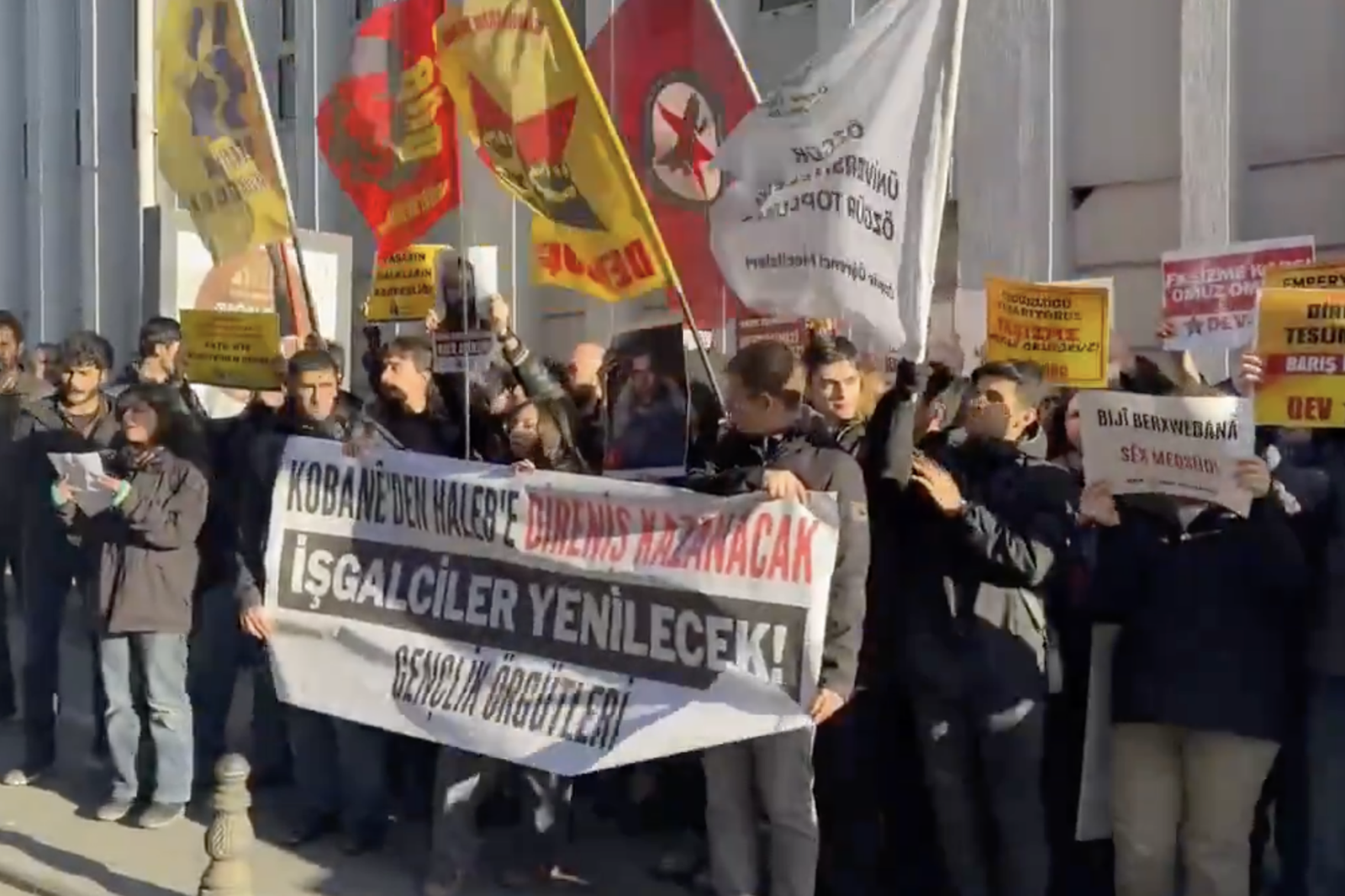 İstanbul’da gençlik örgütleri, Suriye’nin Halep kentinde Türkiye destekli HTŞ ve SMO çetelerinin Kürtlerin yoğun olarak yaşadığı Şeyh Maksud ve Eşrefiye mahallelerine yönelik ağır silahlı saldırılarını protesto etti. Eylem, Halep’teki halklarla dayanışmayı büyütme çağrısıyla gerçekleştirildi.